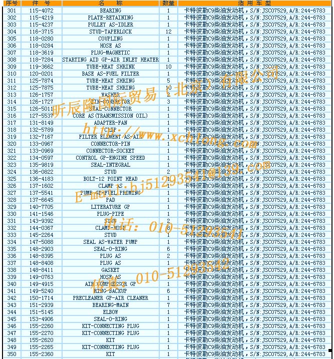 348 155-2620 KIT 1 卡特彼勒C9柴油發(fā)動(dòng)機(jī),S/N:JSC07529,A/R:244-6783